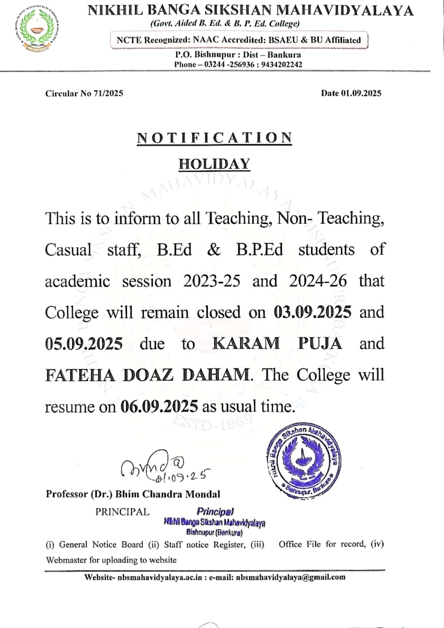 Holiday (Birth day of Dr B.R.Ambedkar & Bengali Nababarsha)