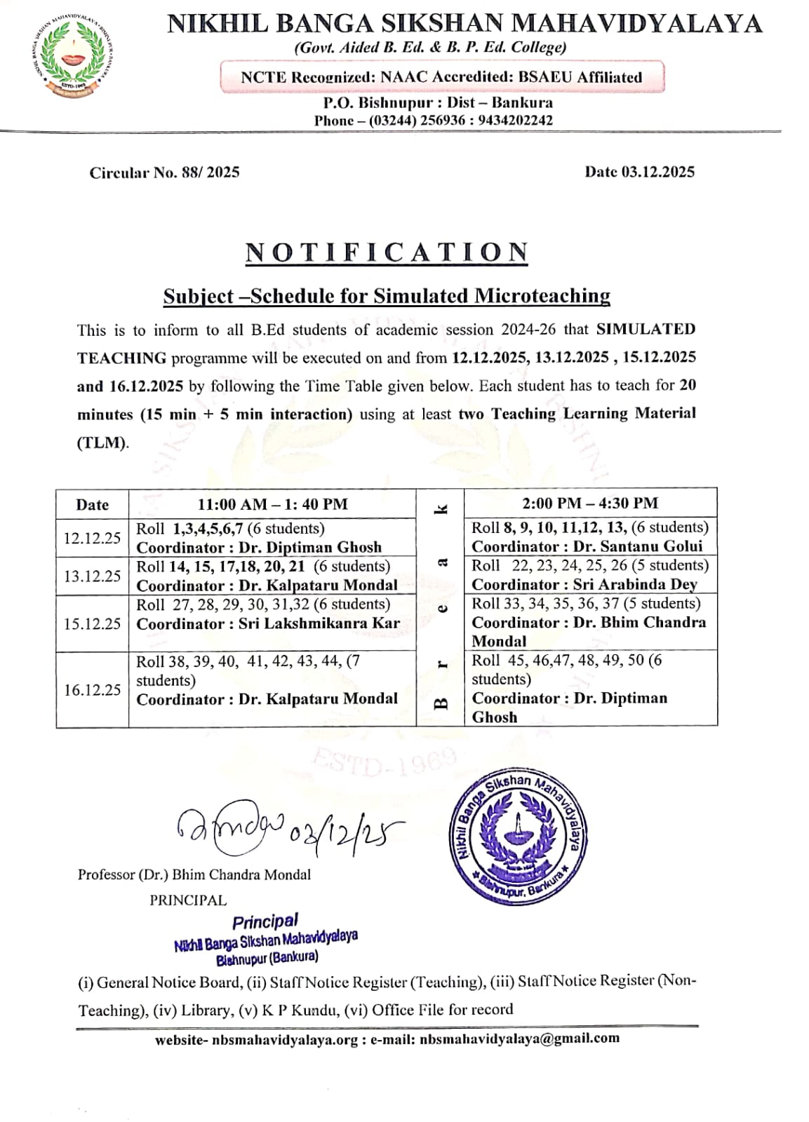 Schedule for Simulated Microteaching